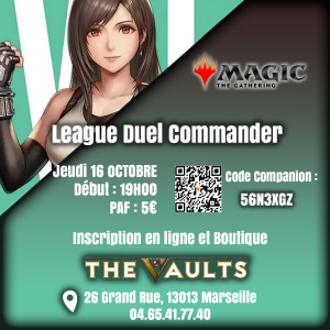 Plongez dans l’univers de Magic: The Gathering avec notre événement LEAGUE DUEL COMMANDER Magic à la boutique TheVaults, située au 26 Grand Rue, 13013 Marseille.