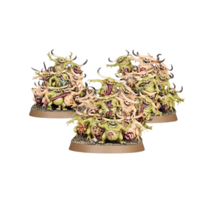 Les Nurglings sont de petites incarnations démoniaques de Nurgle, aussi répugnantes qu’innombrables. Grouillant par dizaines sur chaque socle, ils incarnent la corruption joyeuse et l’endurance surnaturelle du Dieu de la Peste. Cette boîte est idéale pour renforcer une armée de Maggotkin of Nurgle ou de Démons du Chaos.